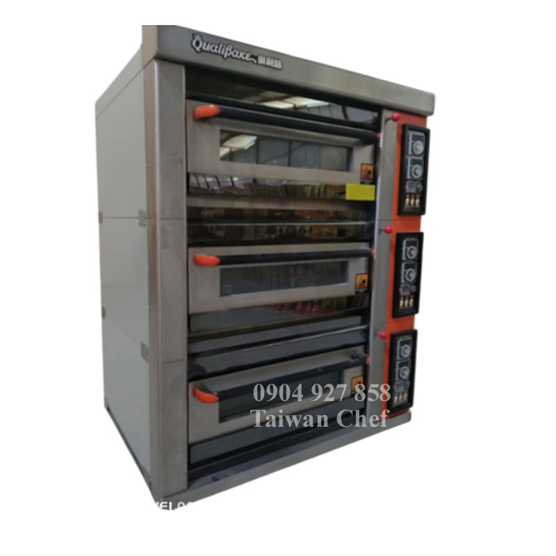 Lò nướng bánh, đây là thiết bị dùng chuyên cho việc nướng bánh. Tùy vào nhu cầu sử dụng của mỗi người, mỗi cơ sở sản xuất bánh mà lựa chọn loại 1 tầng 2 khay, 2 tầng 4 khay hay 3 tầng 6 khay…. cho phù hợp. Có 2 loại nguyên liệu sử dụng là dùng điện và dùng gas. Bài viết này An Phú Tân xin giới thiệu cho các bạn dòng sản phẩm Lò nướng Đài Loan 3 tầng 6 khay dùng gas QD-06Q LUXTA để tiện tham khảo nhé