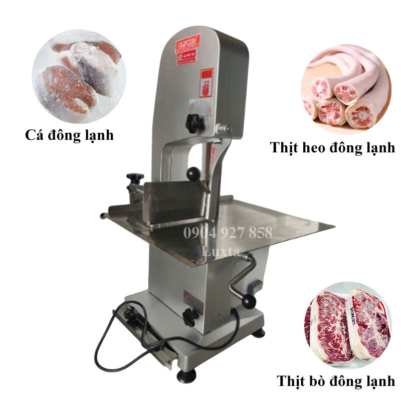 Cắt đa dạng thực phẩm: Máy có thể cắt được nhiều loại thực phẩm khác nhau như chân giò, xương bò, xương gà, cắt cá đông lạnh, thịt đông lạnh,..