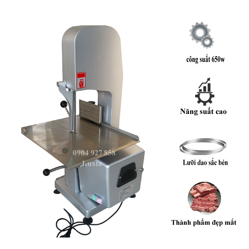Chất liệu cao cấp, độ bền cao: Máy được làm từ chất liệu inox 304 sáng bóng, chống gỉ sét, an toàn vệ sinh thực phẩm và có độ bền cao theo thời gian. Lưỡi cưa được làm từ thép tôi sắc bén, giúp cắt xương nhanh chóng và hiệu quả.