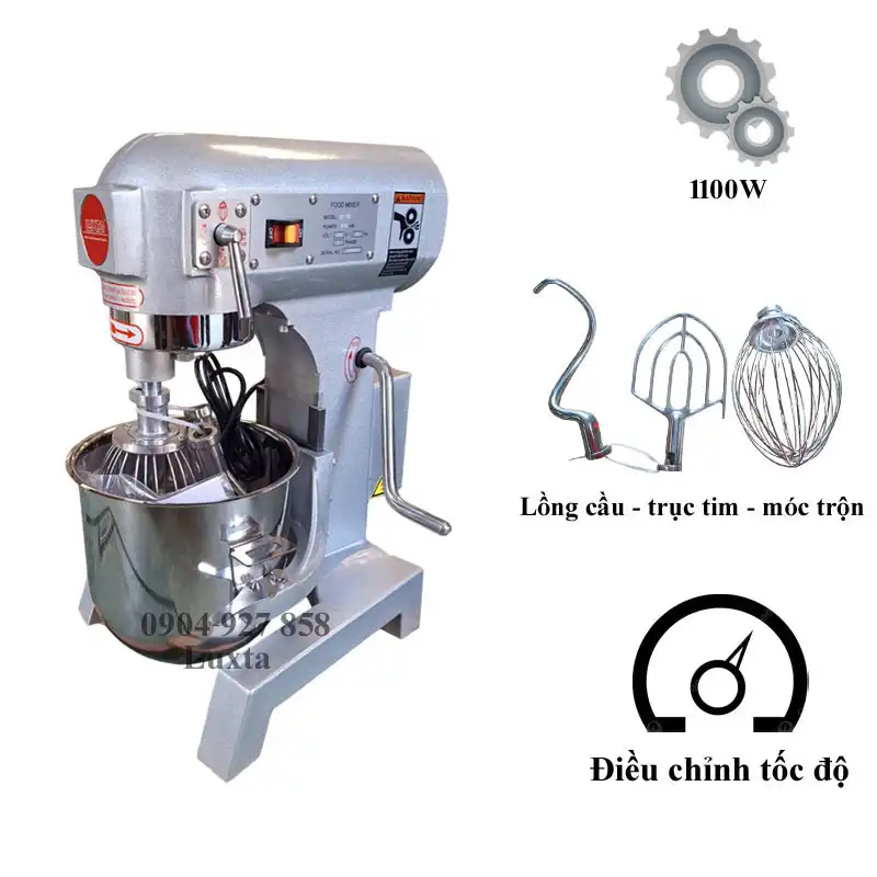 - Dung tích bát trộn lớn: Bát chứa có dung tích từ 4-20 lít hoặc hơn. Có khả năng trộn khối lượng nguyên liệu lớn mà không vương vãi ra ngoài.